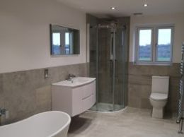 Luxury sanitary ware; Feature showers - some featuring multiple heads; Contemporary tiling; Large vanity units with integral sinks; Free standing 'slipper' roll top baths; Heated towel rail; Backlit LED mirrors
